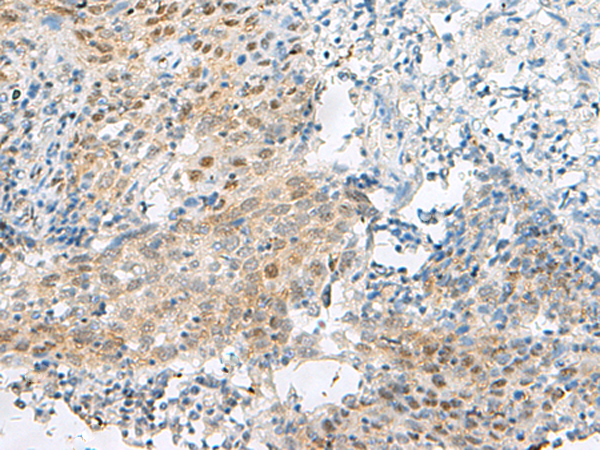 The image is immunohistochemistry of paraffin-embedded Human esophagus cancer tissue using P02967(DHX36 Antibody) at dilution 1/30. (Original magnification: ×200) |