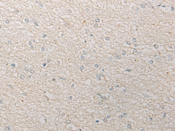 The image is immunohistochemistry of paraffin-embedded Human brain tissue using P13269(DLEC1 Antibody) at dilution 1/20. (Original magnification: ×200) |