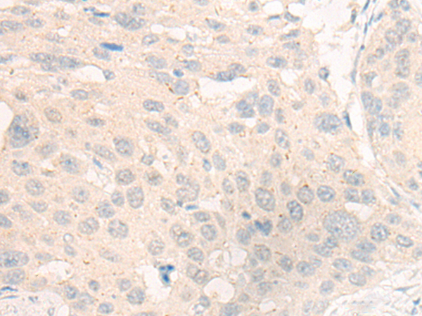 The image is immunohistochemistry of paraffin-embedded Human esophagus cancer tissue using P13271(DLL1 Antibody) at dilution 1/20. (Original magnification: ×200) |