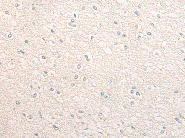 The image is immunohistochemistry of paraffin-embedded Human brain tissue using P13271(DLL1 Antibody) at dilution 1/20. (Original magnification: ×200) |