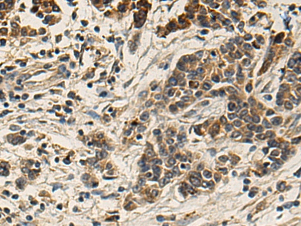 The image is immunohistochemistry of paraffin-embedded Human ovarian cancer tissue using P03473(DNAI2 Antibody) at dilution 1/110. (Original magnification: ×200) |