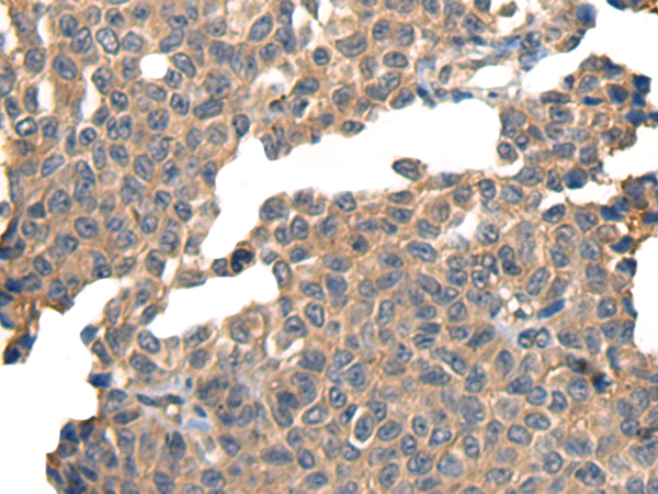 The image is immunohistochemistry of paraffin-embedded Human colorectal cancer tissue using P13119(DNAJC2 Antibody) at dilution 1/35. (Original magnification: ×200) |