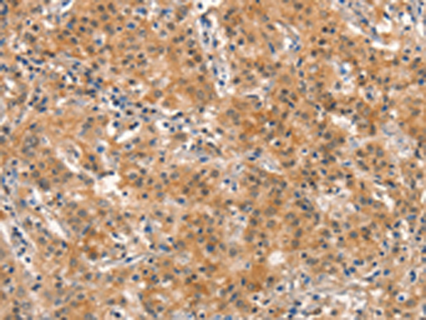 The image is immunohistochemistry of paraffin-embedded Human gastric cancer tissue using P11729(DNM2 Antibody) at dilution 1/40. (Original magnification: ×200) |