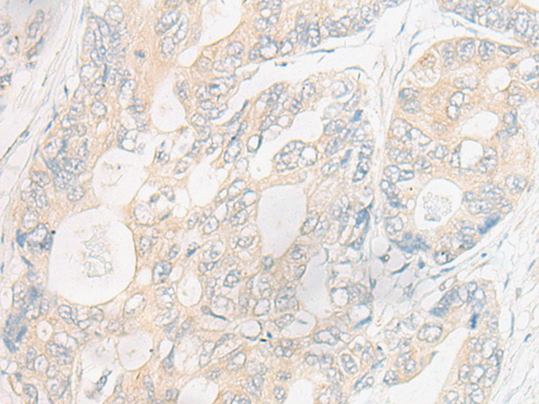 The image is immunohistochemistry of paraffin-embedded Human gastric cancer tissue using P06392(DOC2B Antibody) at dilution 1/20. (Original magnification: ×200) |