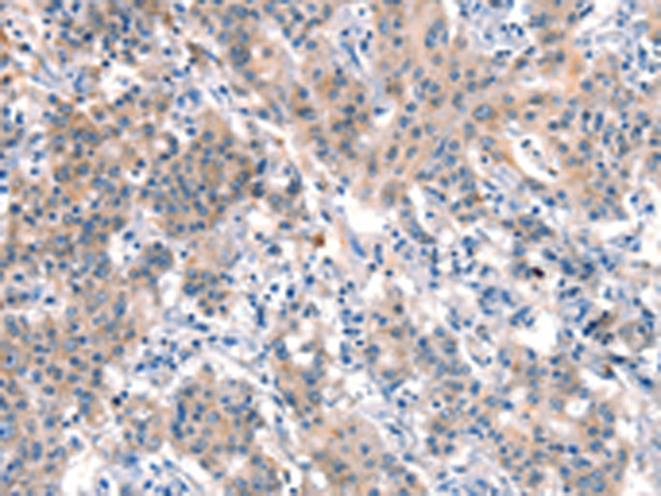 The image is immunohistochemistry of paraffin-embedded Human liver cancer tissue using P04833(DOCK1 Antibody) at dilution 1/25. (Original magnification: ×200) |