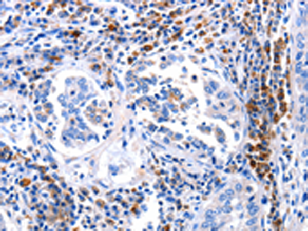The image is immunohistochemistry of paraffin-embedded Human lung cancer tissue using P07260(DOK3 Antibody) at dilution 1/25. (Original magnification: ×200) |
