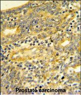 DPP8 Antibody (C-term) (Cat.# P30375) IHC analysis in formalin fixed and paraffin embedded human Prostate carcinoma followed by peroxidase conjugation of the secondary antibody and DAB staining. This data demonstrates the use of the DPP8 Antibody (C-term) for immunohistochemistry. Clinical relevance has not been evaluated. |