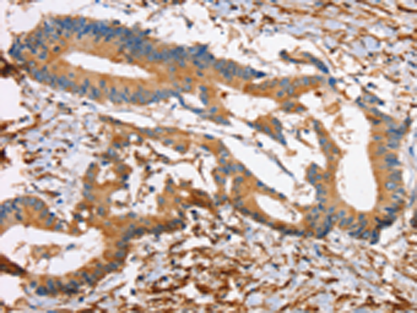 The image is immunohistochemistry of paraffin-embedded Human colon cancer tissue using P03834(DPYSL2 Antibody) at dilution 1/45. (Original magnification: ×200) |