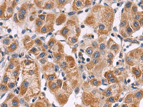 The image is immunohistochemistry of paraffin-embedded Human liver cancer tissue using P03619(DPYSL5 Antibody) at dilution 1/50. (Original magnification: ×200) |