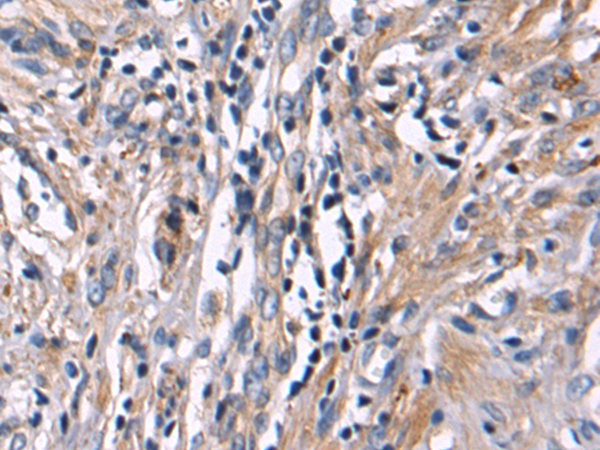 The image is immunohistochemistry of paraffin-embedded Human prostate cancer tissue using P03619(DPYSL5 Antibody) at dilution 1/50. (Original magnification: ×200) |