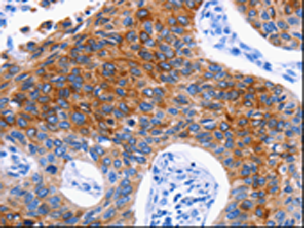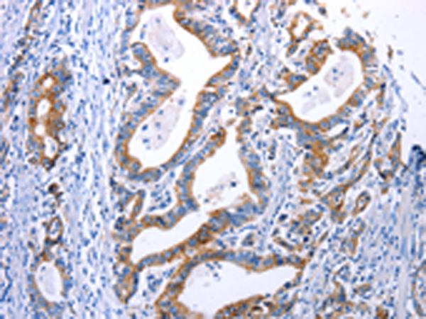 The image is immunohistochemistry of paraffin-embedded Human gastric cancer tissue using P03865(DRD4 Antibody) at dilution 1/30. (Original magnification: ×200) |
