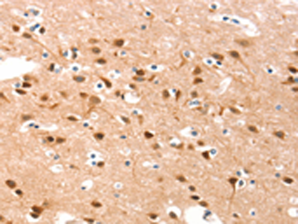 The image is immunohistochemistry of paraffin-embedded Human brain tissue using P11713(DSC1 Antibody) at dilution 1/40. (Original magnification: ×200) |