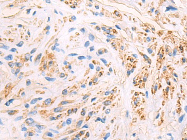 The image is immunohistochemistry of paraffin-embedded Human cervical cancer tissue using P12912(DSCC1 Antibody) at dilution 1/50. (Original magnification: ×200) |
