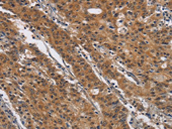 The image is immunohistochemistry of paraffin-embedded Human gastric cancer tissue using P03877(DTNBP1 Antibody) at dilution 1/20. (Original magnification: ×200) |