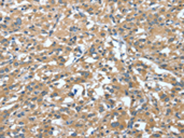 The image is immunohistochemistry of paraffin-embedded Human thyroid cancer tissue using P04823(DTX1 Antibody) at dilution 1/30. (Original magnification: ×200) |
