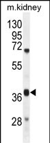 DUS4L Antibody (Center) (Cat. #P30898) western blot analysis in mouse kidney tissue lysates (35ug/lane).This demonstrates the DUS4L antibody detected the DUS4L protein (arrow). |
