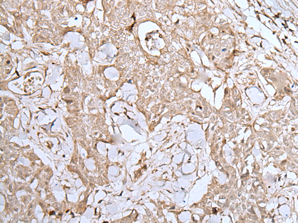 The image is immunohistochemistry of paraffin-embedded Human lung cancer tissue using P12727(DUSP3 Antibody) at dilution 1/25. (Original magnification: ×200) |