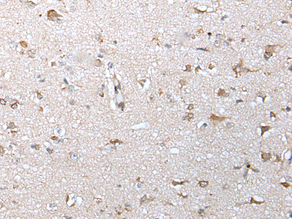The image is immunohistochemistry of paraffin-embedded Human brain tissue using P12727(DUSP3 Antibody) at dilution 1/25. (Original magnification: ×200) |