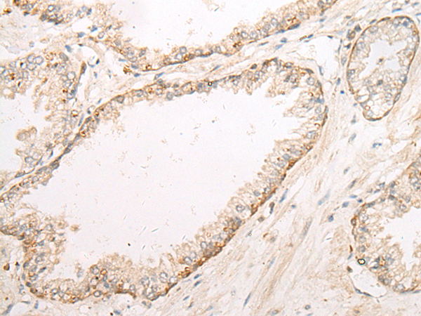 The image is immunohistochemistry of paraffin-embedded Human prostate cancer tissue using P06406(DYNC1LI2 Antibody) at dilution 1/20. (Original magnification: ×200) |