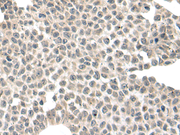 The image is immunohistochemistry of paraffin-embedded Human ovarian cancer tissue using P13162(DYRK1A Antibody) at dilution 1/30. (Original magnification: ×200) |
