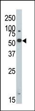 Western blot analysis of lysates from CEM, Hela cell line (from left to right), using DYRK2 Antibody (P46) (Cat. #P32616). P32616 was diluted at 1:1000 at each lane. A goat anti-rabbit IgG H&L(HRP) at 1:5000 dilution was used as the secondary antibody. Lysates at 35ug per lane. |