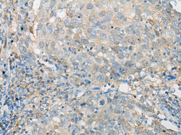 The image is immunohistochemistry of paraffin-embedded Human cervical cancer tissue using P13297(EFHD2 Antibody) at dilution 1/20. (Original magnification: ×200) |