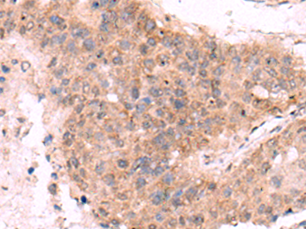 The image is immunohistochemistry of paraffin-embedded Human liver cancer tissue using P03660(EFNB2(Ab-330) Antibody) at dilution 1/20. (Original magnification: ×200) |