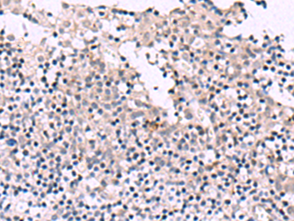 The image is immunohistochemistry of paraffin-embedded Human tonsil tissue using P03660(EFNB2(Ab-330) Antibody) at dilution 1/20. (Original magnification: ×200) |