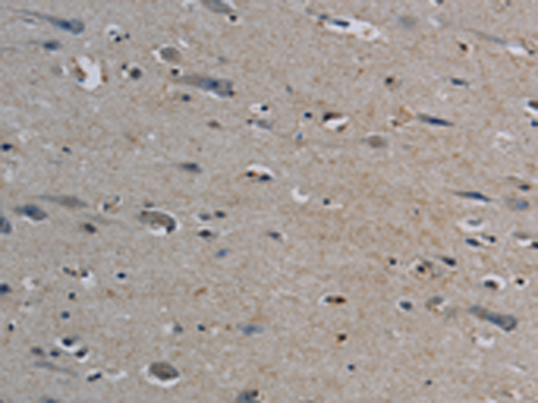 The image is immunohistochemistry of paraffin-embedded Human brain tissue using P12043(EIF2AK3 Antibody) at dilution 1/50. (Original magnification: ×200) |
