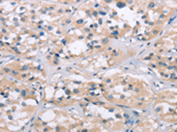 The image is immunohistochemistry of paraffin-embedded Human thyroid cancer tissue using P04652(ELP3 Antibody) at dilution 1/15. (Original magnification: ×200) |