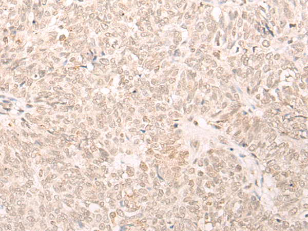 The image is immunohistochemistry of paraffin-embedded Human ovarian cancer tissue using P06428(EME2 Antibody) at dilution 1/25. (Original magnification: ×200) |
