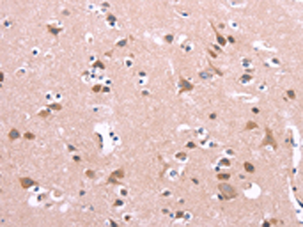 The image is immunohistochemistry of paraffin-embedded Human brain tissue using P04847(ENDOG Antibody) at dilution 1/15. (Original magnification: ×200) |