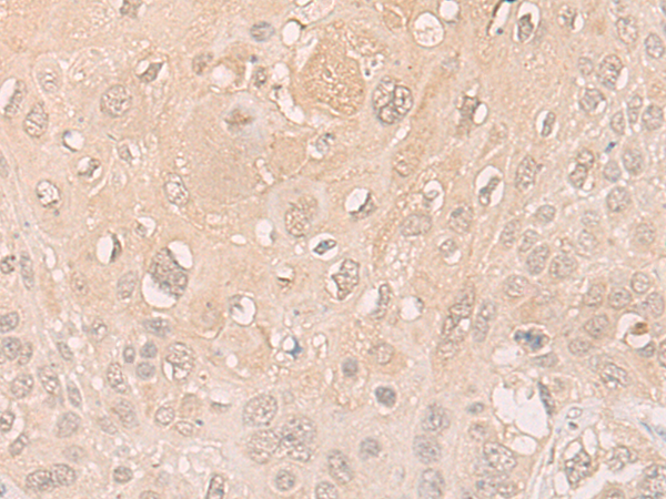 The image is immunohistochemistry of paraffin-embedded Human esophagus cancer tissue using P13324(ENOSF1 Antibody) at dilution 1/20. (Original magnification: ×200) |