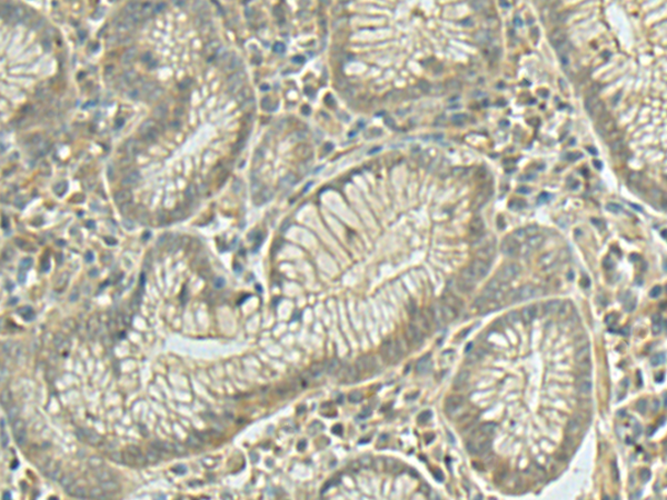 The image is immunohistochemistry of paraffin-embedded Human gastric cancer tissue using P05526(ENTPD1 Antibody) at dilution 1/40. (Original magnification: ×200) |