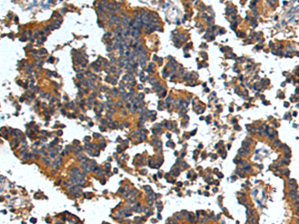 The image is immunohistochemistry of paraffin-embedded Human esophagus cancer tissue using P05652(EPHA2 Antibody) at dilution 1/55. (Original magnification: ×200) |
