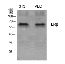Western blot analysis of ER beta in 3T3, VEC lysates using ERβ antibody. |