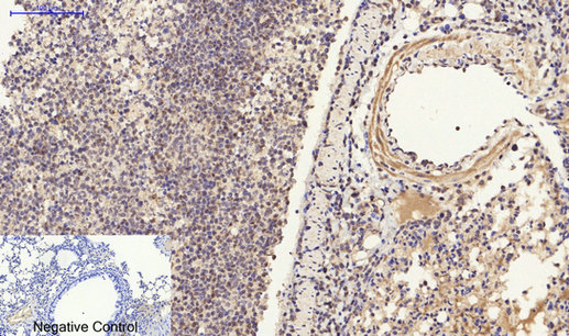 Immunohistochemistry analysis of paraffin-embedded mouse lung tissue using ERβ antibody.High-pressure and temperature Sodium Citrate pH 6.0 was used for antigen retrieval. Negative control was used by secondary antibody only. |