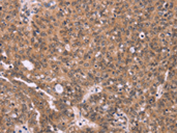 The image is immunohistochemistry of paraffin-embedded Human ovarian cancer tissue using P04853(ERAS Antibody) at dilution 1/40. (Original magnification: ×200) |