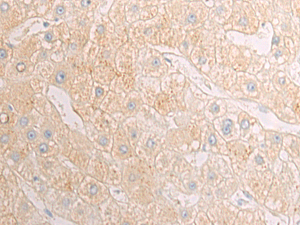 The image is immunohistochemistry of paraffin-embedded Human liver cancer tissue using P03811(ERBB2 Antibody) at dilution 1/50. (Original magnification: ×200) |