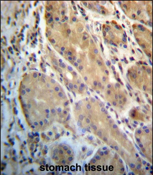 ERO1L Antibody (C-term) (Cat. #P31262)immunohistochemistry analysis in formalin fixed and paraffin embedded human stomach tissue followed by peroxidase conjugation of the secondary antibody and DAB staining.This data demonstrates the use of ERO1L Antibody (C-term) for immunohistochemistry. Clinical relevance has not been evaluated. |