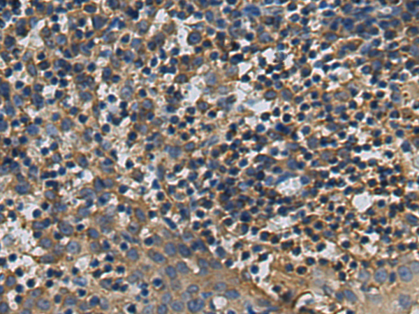 The image is immunohistochemistry of paraffin-embedded Human tonsil tissue using P05056(ERRFI1 Antibody) at dilution 1/40. (Original magnification: ×200) |