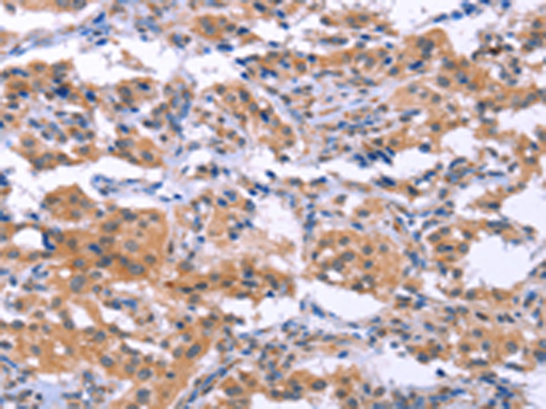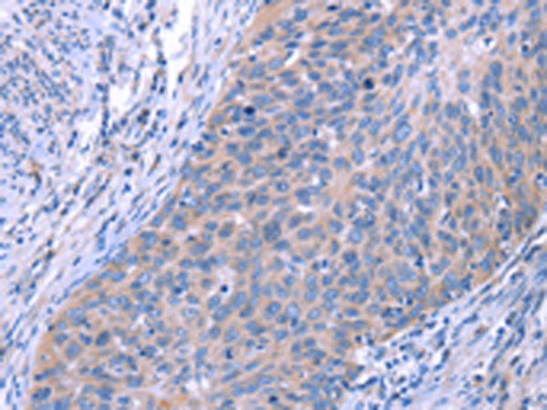 The image is immunohistochemistry of paraffin-embedded Human cervical cancer tissue using P04858(ESPL1 Antibody) at dilution 1/40. (Original magnification: ×200) |