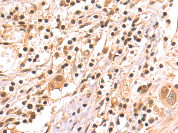 The image is immunohistochemistry of paraffin-embedded Human esophagus cancer tissue using P13756(ESR1 Antibody) at dilution 1/50. (Original magnification: ×200) |