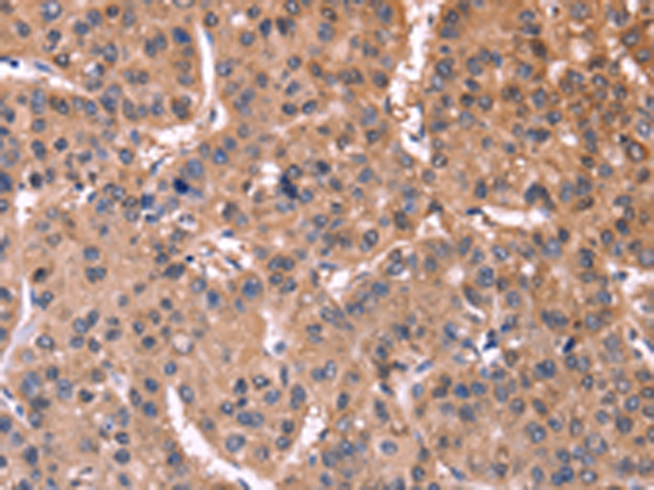 The image is immunohistochemistry of paraffin-embedded Human liver cancer tissue using P11747(ETFB Antibody) at dilution 1/25. (Original magnification: ×200) |
