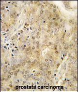 Formalin-fixed and paraffin-embedded human prostata carcinoma tissue reacted with EZH1 Antibody (Center) (Cat.#P30079), which was peroxidase-conjugated to the secondary antibody, followed by DAB staining. This data demonstrates the use of this antibody for immunohistochemistry; clinical relevance has not been evaluated. |