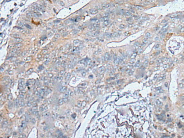 The image is immunohistochemistry of paraffin-embedded Human colorectal cancer tissue using P05852(FABP3 Antibody) at dilution 1/25. (Original magnification: ×200) |