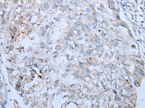 The image is immunohistochemistry of paraffin-embedded Human lung cancer tissue using P05852(FABP3 Antibody) at dilution 1/25. (Original magnification: ×200) |