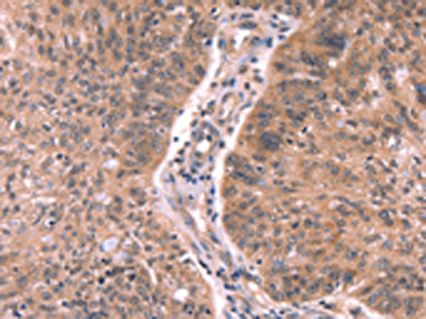 The image is immunohistochemistry of paraffin-embedded Human ovarian cancer tissue using P11754(FAIM Antibody) at dilution 1/25. (Original magnification: ×200) |