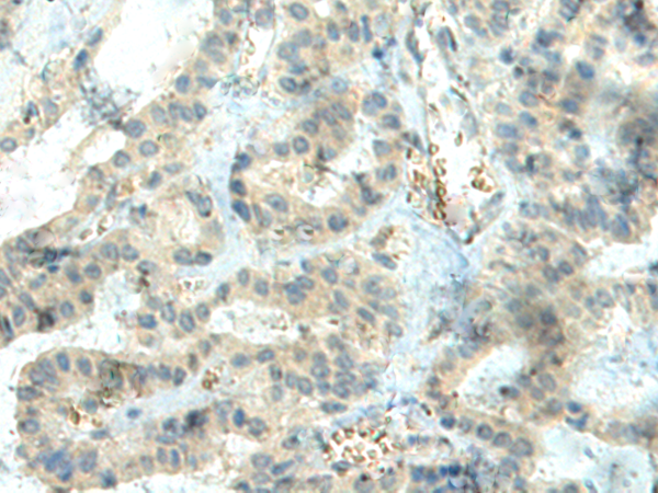 The image is immunohistochemistry of paraffin-embedded Human thyroid cancer tissue using P13396(FBXL16 Antibody) at dilution 1/25. (Original magnification: ×200) |