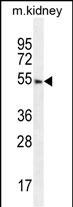 FBXO24 Antibody (Center) (Cat. #P30891) western blot analysis in mouse kidney tissue lysates (35ug/lane).This demonstrates the FBXO24 antibody detected the FBXO24 protein (arrow). |